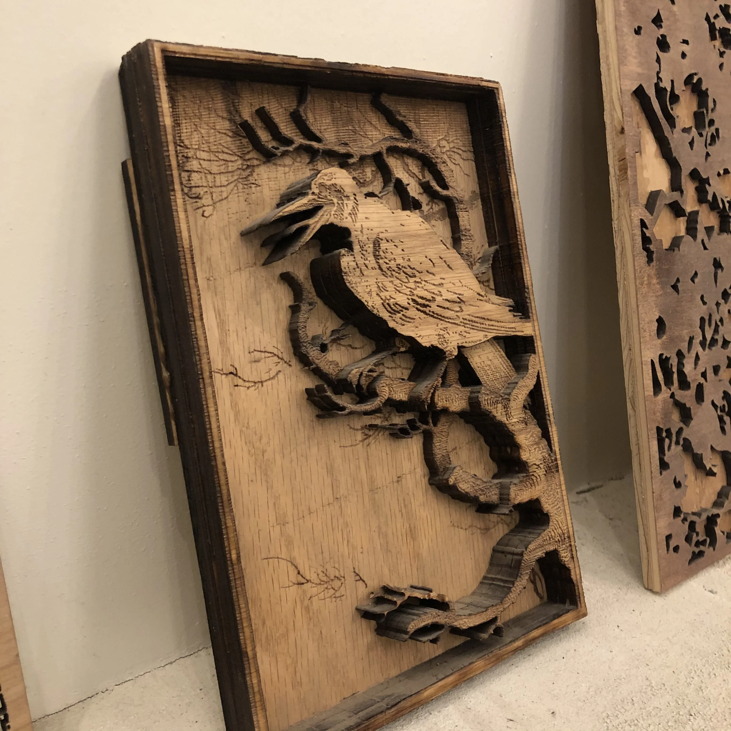 These machines can cut and engrave materials such as wood (up to 1/4"), acrylic (up to 1/4"), cardboard, and paper. They’re frequently used for a wide range of creative projects—including making etched printing plates for use with our traditional printing press. The laser+printing press results can be stunning!